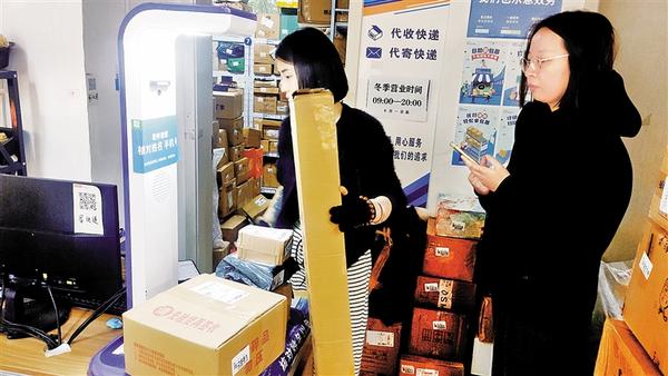 “双十一”还没到,我市第一波物流高峰已经来临,各快递企业十分忙碌。11月7日,记者在中心城区一家快递代收点看到,市民正排队取件,其中一名市民领取了5个快递件。 记者 田亚楠 摄