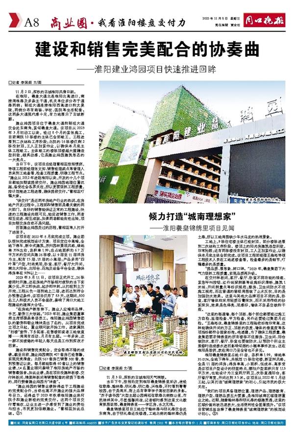 “建业鸿园的销售业绩除得益于工程建设的完美配合外,当然也离不开建业的强大品牌号召力,还得益于2023年秋季淮阳建业滨河院子和建业新桂的完美交付。这两个项目交付零维权,让业主进一步感受到了建业的责任与担当,市民更加信赖建业。”曹相蕊如此总结。③5