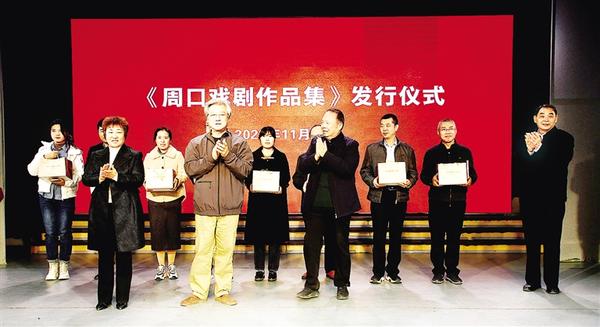 11月10日上午,周口大型专业文献资料汇编《周口戏剧作品集》(六卷本)发行仪式在市文化馆举行。《周口戏剧作品集》(六卷本)汇集了周口市70年(1949年—2019年)来创作并上演的大部分戏剧作品,共有300万字。 记者 梁照曾 摄