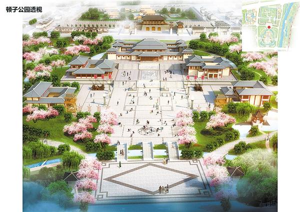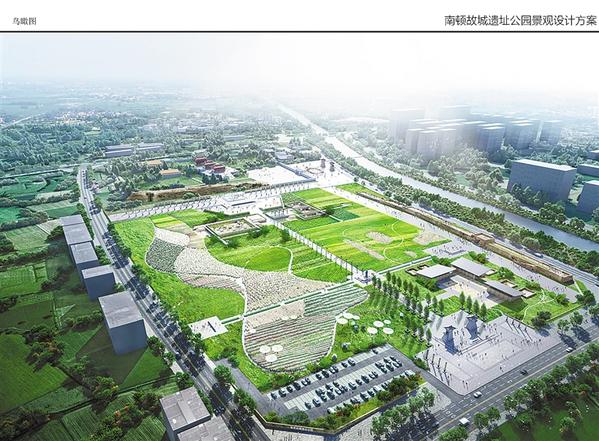 其中,南顿故城遗址公园为一期项目中打造的“重头戏”,其总体规划结构为“三轴、六区、多节点”。“三轴”包含入口景观东西轴、遗址展南北轴、休闲活动东西轴;“六区”包含主入口广场区、花海种植区、遗址展示区、亲子活动区、考古体验区、综合服务与研学展示区;“多节点”包含顿子王宫、顿子公园多个景观展示点,将全方位再现顿子古国的历史面貌。