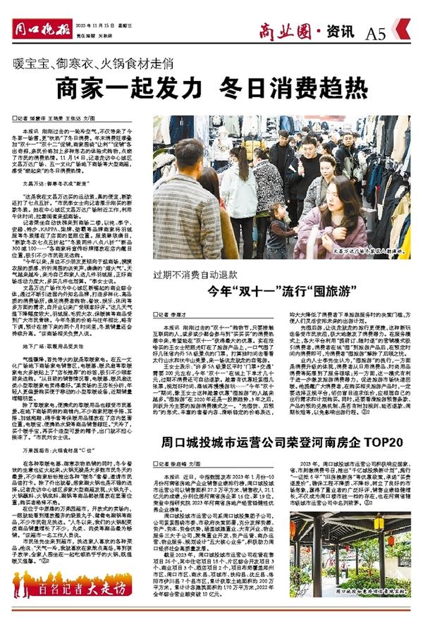 2023年,周口城投城市运营公司积极响应国家、省、市刺激消费号召,推出“千亿城投焕新计划”,施行“一证抵8平”“旧房换新房”等优惠政策,承诺“买贵退差价”,确保工程不降质、不降标,树立了良好的市场形象,赢得了置业者的广泛好评,销售业绩稳健增长,不仅成为周口楼市独一档的存在,也在河南省辖市级城市运营公司中名列前茅。③2