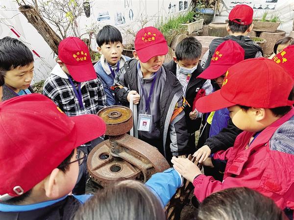 小记者们先后走进文化艺术馆、农耕(民俗)馆、古碑廊和红色文化展览馆,观看民俗物品,感受了古老的生产生活气息,也认识了很多农具,犁、耙、大锹、手摇扬场机……最后还动手体验了各种农具,感受到了劳动的快乐和古人的智慧。
