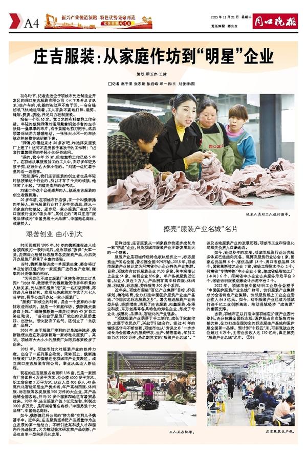 回眸过往,庄吉服装从一间家庭作坊逐步成长为一家“明星”企业,只是项城市服装产业不断发展壮大的一个缩影。