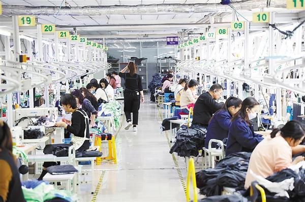 初冬时节,记者走进位于项城市先进制造业开发区的周口庄吉服装有限公司(以下简称庄吉服装)生产车间,机器的转动声不绝于耳,一台台缝纫机飞快地运转着,工人有条不紊地打样、裁剪、缝制、熨烫、质检,开足马力赶制服装。