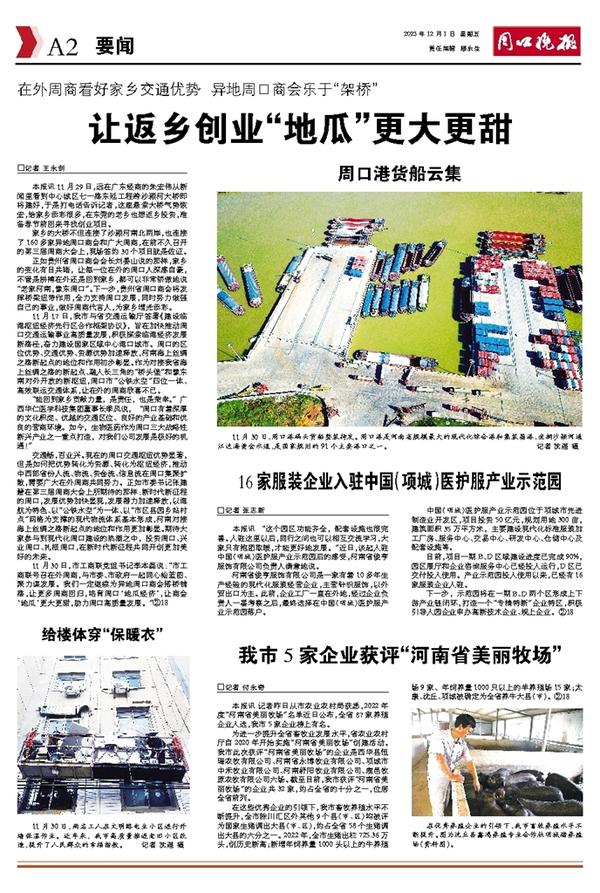 11月30日,周口港码头货船整装待发。周口港是河南省规模最大的现代化综合港和集装箱港,坐拥沙颍河通江达海黄金水道,是国家规划的91个主要港口之一。 记者 沈湛 摄