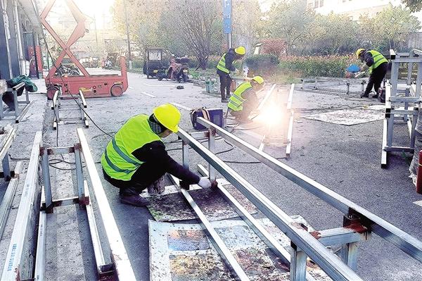 12月4日,在周口市关帝庙历史街区城市更新改造工程现场,施工人员正抢抓晴好天气时机,紧锣密鼓推进工程建设。记者 沈湛 摄