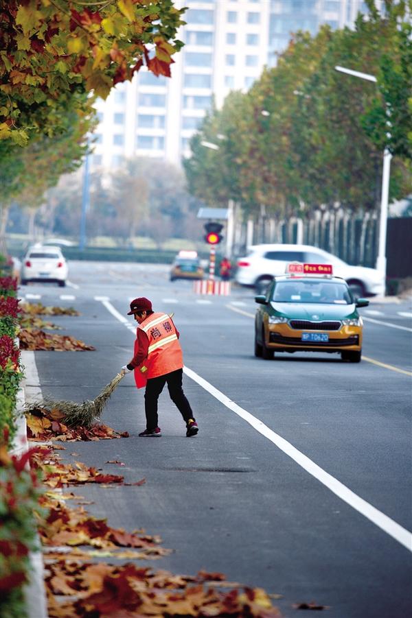 12月4日,在武盛大道、文昌大道、平安路、光明路等多个中心城区路段,环卫工人不遗余力地清扫落叶,为市民打造整洁优美的城市生活环境。入冬以来,周口市区行道树树叶渐渐由绿变黄,不断随风飘落,满地落叶层层叠叠,为环卫部门开展清扫工作增加了难度。