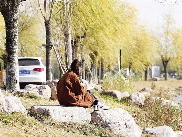 12月6日,淮阳区弦歌台景区内,一位市民正在湖边阅读。近年来,我市高度重视“书香周口”建设,在全市营造了“爱读书、读好书、善读书”的浓厚学习氛围。③5记者 刘俊涛 摄