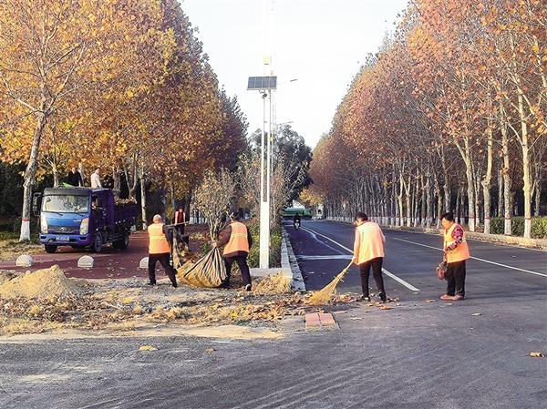 12月6日,周口植物园工作人员对园区内外大量落叶进行清扫,既清洁了园区,又消除了火灾隐患。记者 沈湛 摄
