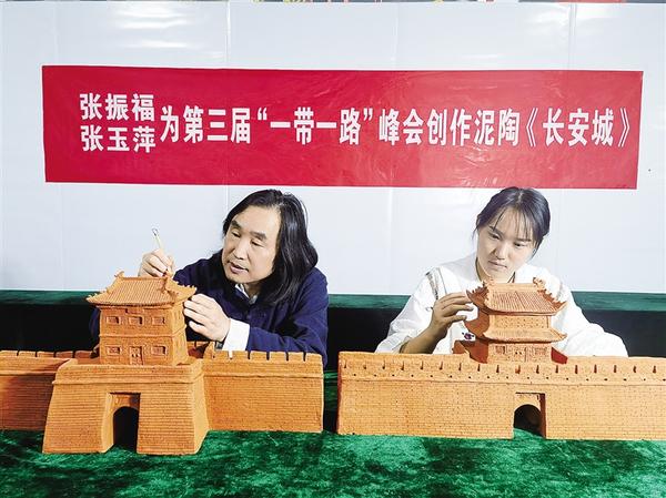 2023年10月18日,张振福、张玉萍父女联合创作的陶瓷泥塑作品《长安》,荣登第三届“一带一路”国际合作高峰论坛会场。③2