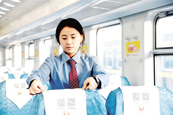 列车始发前,乘务人员整理坐具。12月8日9时25分,升级为电气化的周口至上海K1505次列车在周口火车站始发,标志着周口火车告别燃油时代,进入清洁环保的电气化运行时代。 记者 梁照曾 摄
