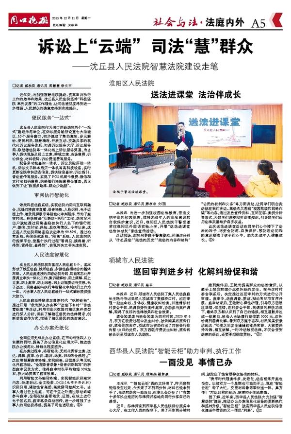 本报讯 近日,项城市人民法院丁集人民法庭庭长王艳与书记员深入项城市丁集镇桥口村,巡回审理一起生命权、身体权、健康权纠纷案,并邀请该村村委会干部、民调员旁听案件庭审,协助参与案件调解,取得了良好的法律效果和社会效果。