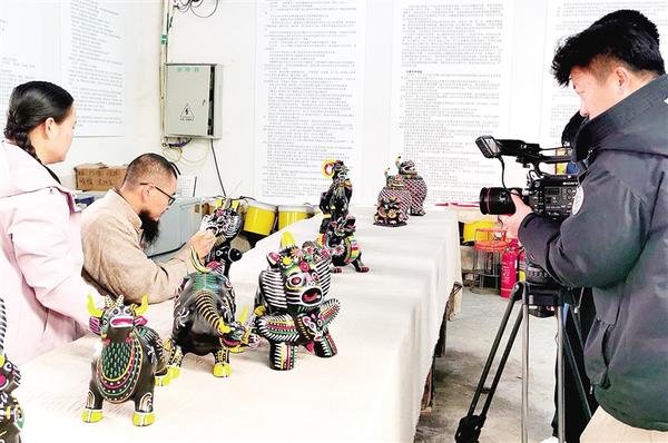 本报讯 12月9日,在淮阳邵波工作室,中央广播电视总台大型百集纪录片《匠人》栏目摄制组一行正在拍摄邵波和他的“泥泥狗”作品。之后,这一系列的“指尖艺术”和“泥泥狗”艺人的“匠心”都将通过银屏得以展示。