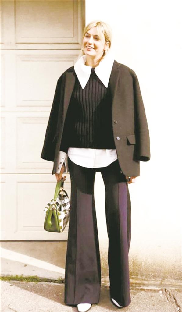 惯用穿法是“外松内紧”“外长内短”,想给造型添些新意,可尝试“外紧内松”“外短内长”的穿搭思路。“外紧内松”需要注意内搭的厚度不能太厚,外搭不能太过于紧身,要张弛有度,不仅可显瘦、显腰身,还能让整体造型看起来更有层次感。而“外短内长”的重点在于用适当“留白”来突出细节,搭配时尽可能留有清晰的腰线,即衣服与衣服之间的色彩对比要强,才能在凸显层次的同时,不破坏身材的比例。