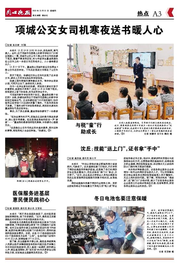 本报讯 12月19日18时30分许,夜色渐深,寒气袭人。此时,位于项城市花园路上的新华学校大门口却出现暖心一幕:项城市公交公司4路公交车女司机陈娜下班后,冒着严寒来到该校,将七年级学生董诚浩遗失在公交车上的一本语文书交到他手上,小小善举感动众人。