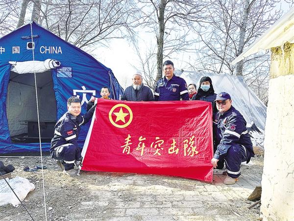 近日,王艳杰和队员张翔、李振、方亚宁在灾区帮助灾民搭好帐篷后留影。自12月19日晚8时连夜赶往甘肃,到12月21日下午4时圆满完成救援任务,郸城县青年志愿者协会特战应急救援队队长王艳杰和队员张翔、李振、方亚宁一行4人,到甘肃省临夏回族自治州积石山县大河家镇展开救援工作,共搭建应急救灾帐篷40余顶,协助转移安置受灾群众300多人,搜寻并劝离16名擅自到高危险区域的人,帮助22户受灾群众转移生活物资,于12月21日晚6时返程。 记者 徐松 通讯员 张翔 摄