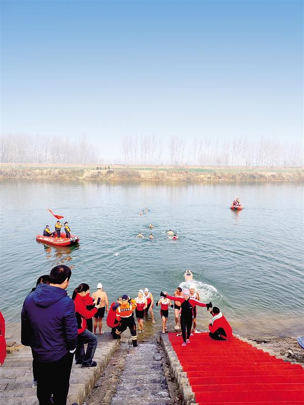 1月1日,为迎接新的一年,周口市游泳协会、周口市神鹰救援队联合古井集团共同举办了畅游沙颍河活动,得到了众多游泳爱好者的大力支持。记者 刘俊涛 摄