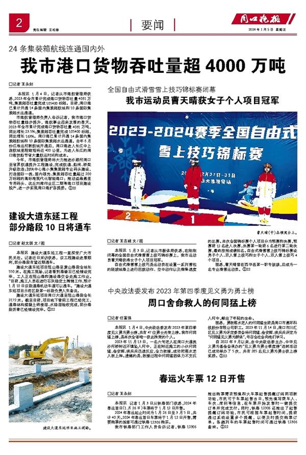 本报讯 记者1月3日从铁路部门获悉,2024年春运首日(1月26日)车票将于1月12日开售。