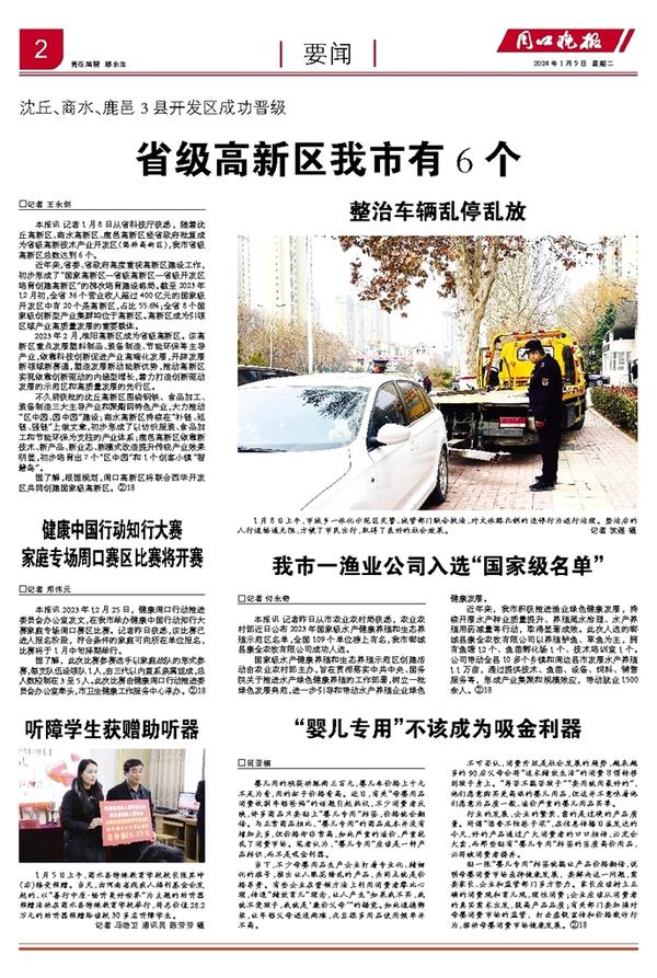 本报讯 记者1月8日从省科技厅获悉,随着沈丘高新区、商水高新区、鹿邑高新区经省政府批复成为省级高新技术产业开发区(简称高新区),我市省级高新区总数达到6个。