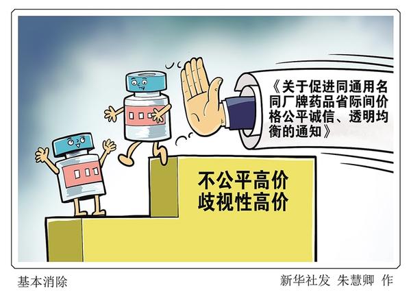 国家医保局1月5日发布《关于促进同通用名同厂牌药品省际间价格公平诚信、透明均衡的通知》,明确到2024年3月底前,通用名、厂牌、剂型、规格均相同的药品在省际间的不公平高价、歧视性高价,推动医药企业价格行为更加公平诚信。 新华社发 朱慧卿 作