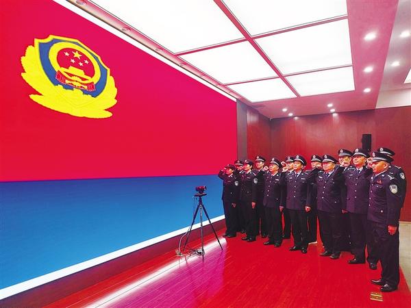 1月8日,周口市中级人民法院司法警察支队开展向警旗宣誓活动。通过重温入警誓词,让全体司法警察牢记自身肩负的责任和使命。通讯员 李书永 摄