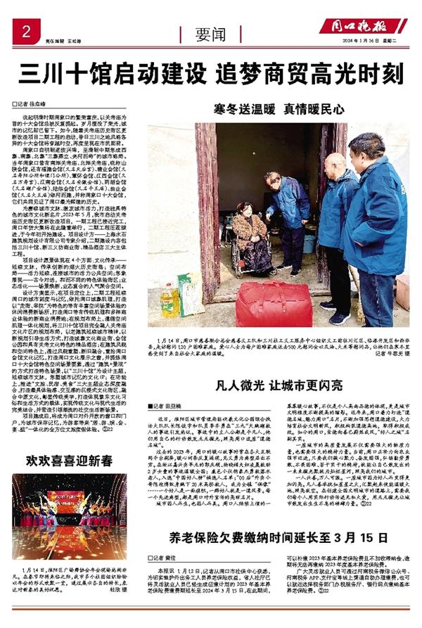 本报讯 1月12日,记者从周口市社保中心获悉,为切实维护外出务工人员养老保险权益,省人社厅已将灵活就业人员已经生成征缴计划的2023年基本养老保险费缴费期延长至2024年3月15日,在此期间,可以补缴2023年基本养老保险费且不加收滞纳金,逾期将无法再缴纳2023年度基本养老保险费。