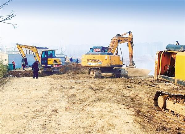 1月16日,中心城区贾鲁河闸上游西侧的河堤护坡和沿河路面同时施工中。据了解,贾鲁河改造工程城区段已接近尾声,改造后的河堤能最大限度保护沿河居民的生命财产安全。③2记者 沈湛 摄