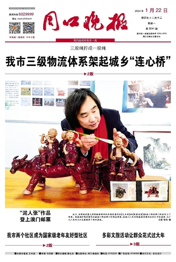 近日,由郸城泥塑大师张振福制作的丹钧泥塑作品《大丰收》和《牧童短笛》经澳门邮政部门批准印上了邮票。张振福丹钧泥塑作品被澳门邮政部门印制成邮票,是澳门人民对张振福泥塑作品的认可和喜爱,为广大人民的文化互鉴提供了新的渠道。 记者 徐松 摄