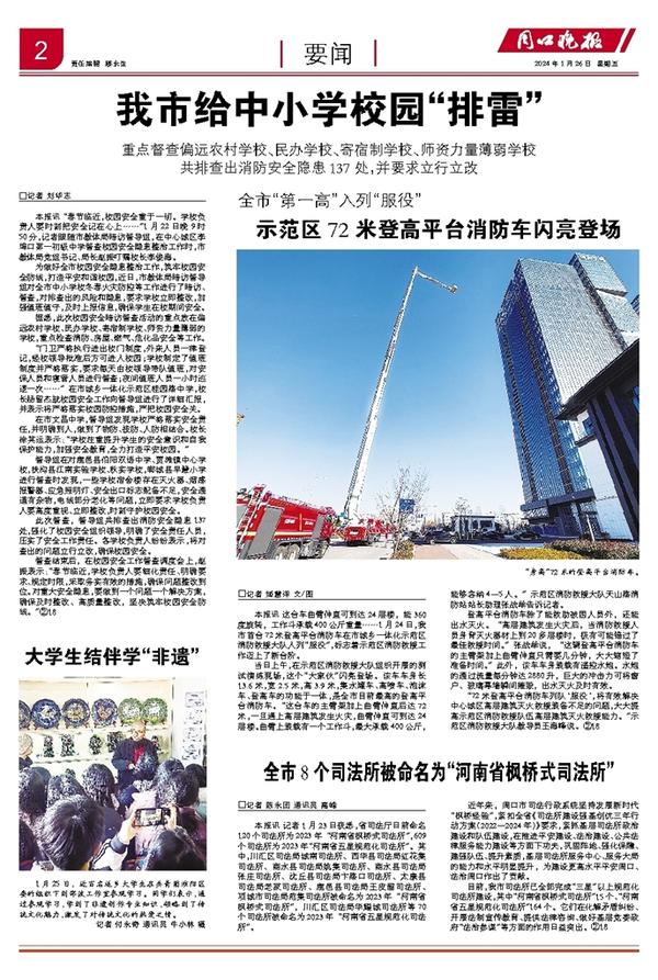 本报讯 记者1月23日获悉,省司法厅日前命名120个司法所为2023年“河南省枫桥式司法所”,609个司法所为2023年“河南省五星规范化司法所”。其中,川汇区司法局城南司法所、西华县司法局红花集司法所、商水县司法局姚集司法所、商水县司法局张庄司法所、沈丘县司法局卞路口司法所、太康县司法局老冢司法所、鹿邑县司法局王皮溜司法所、项城市司法局范集司法所被命名为2023年“河南省枫桥式司法所”,川汇区司法局华耀城司法所等70个司法所被命名为2023年“河南省五星规范化司法所”。