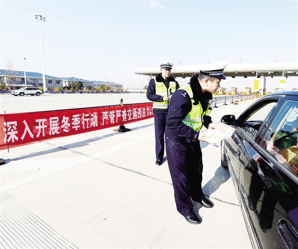 1月26日,我市高速交警在开展交通安全宣传。当天9时30分,在大广高速周口东收费站外广场,我市高速公路2024年春运安全暨“一路三方”联合执法活动启动,市高速交警支队民辅警和河南交通投资集团有限公司周口分公司路产、清障救援等部门工作人员参加了启动仪式。仪式结束后,联合执法部门开展交通违法专项整治行动,重点整治网约车、公路客运车、旅游包车、危化品车、货运车等车辆交通违法行为。记者 任富强 通讯员 郭利军