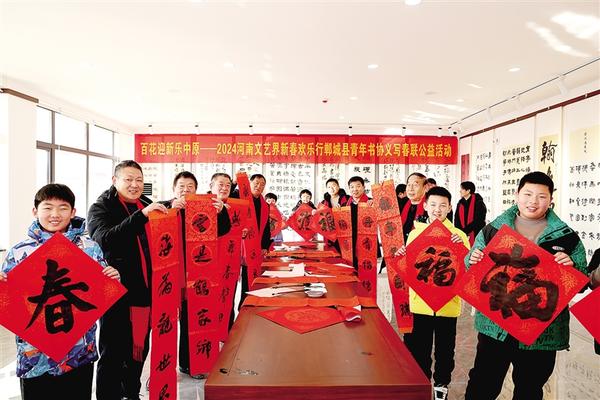 1月26日,郸城县书法爱好者齐聚一堂,展示义写的春联。当日,有“中国书法之乡”之称的郸城县举行“墨润龙年 万福迎春”书法展暨义写春联进万家活动,100多名书法爱好者义写春联上千副,免费赠送广大群众。