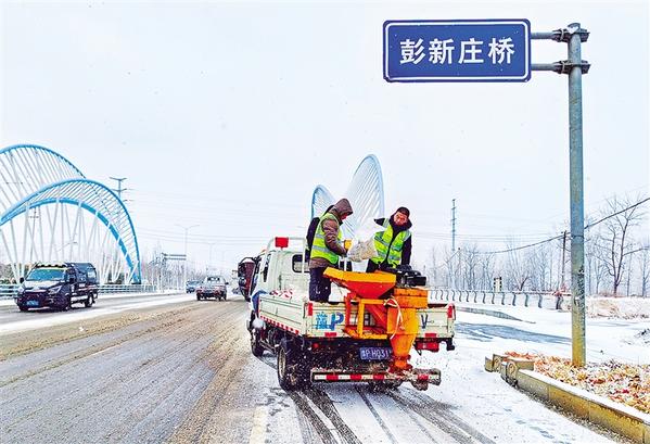 市公路事业发展中心党委书记钱哲伟告诉记者:“根据此轮低温雨雪冰冻天气持续时间长、雨雪量较大的特点,我市公路部门将密切关注天气变化、明确岗位职责,严格落实24小时值班制度和班子成员带班制度,对本轮低温雨雪冰冻天气对公路桥梁的影响进行分析研判,根据实际情况采取应对措施,全面做好重点路段和重点桥梁的融雪除冰工作,确保道路畅通和人民生命财产安全。”③2
