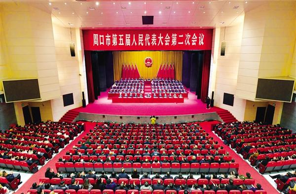 2月5日下午,周口市第五届人民代表大会第二次会议圆满完成各项议程后胜利闭幕。记者 王映 摄