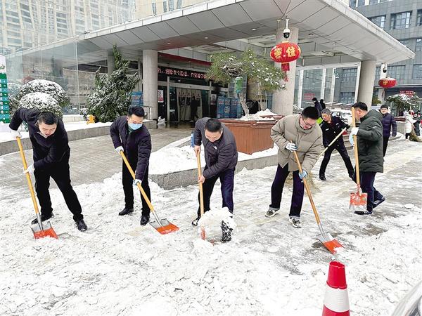 2月3日,周口市中医院开展清理积雪活动。近日,我市出现强降雪天气,积雪为前往医院就诊的患者及家属带来诸多不便。该院及时组织人员,对院内道路积雪进行清理,畅通就诊通道,保障就诊群众通行安全。记者 郑伟元 通讯员 曹亚丹 摄