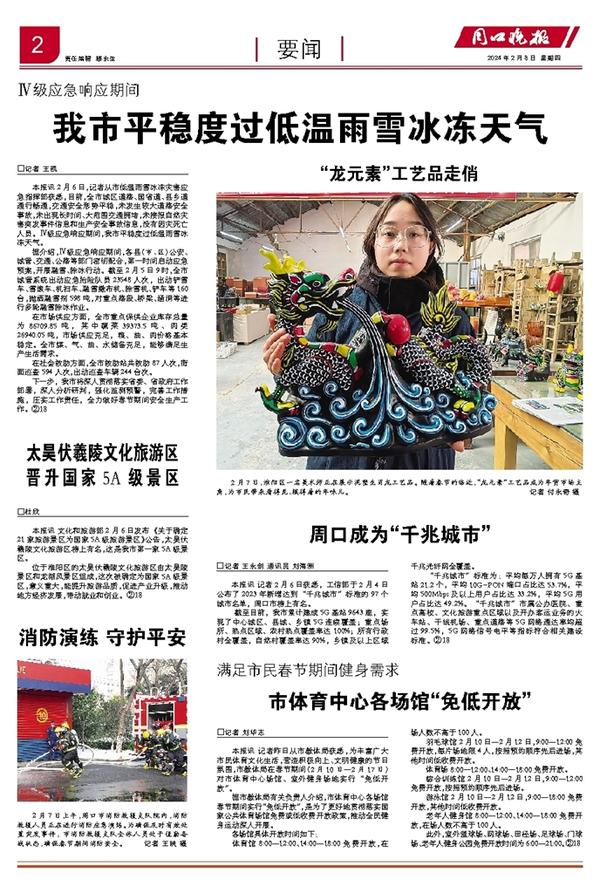 本报讯 记者2月6日获悉,工信部于2月4日公布了2023年新增达到“千兆城市”标准的97个城市名单,周口市榜上有名。