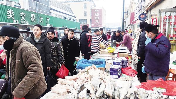 “活虾37元一斤、鲈鱼18元一斤、草鱼7元一斤……”一家海鲜店老板一边招呼着顾客,一边吆喝着为顾客介绍。不少顾客纷纷停下脚步,询问具体信息。“这里的海鲜种类齐全,每年春节前都会有大量顾客前来购买,有的是自己吃,有的是给外地朋友邮寄。”该老板说。