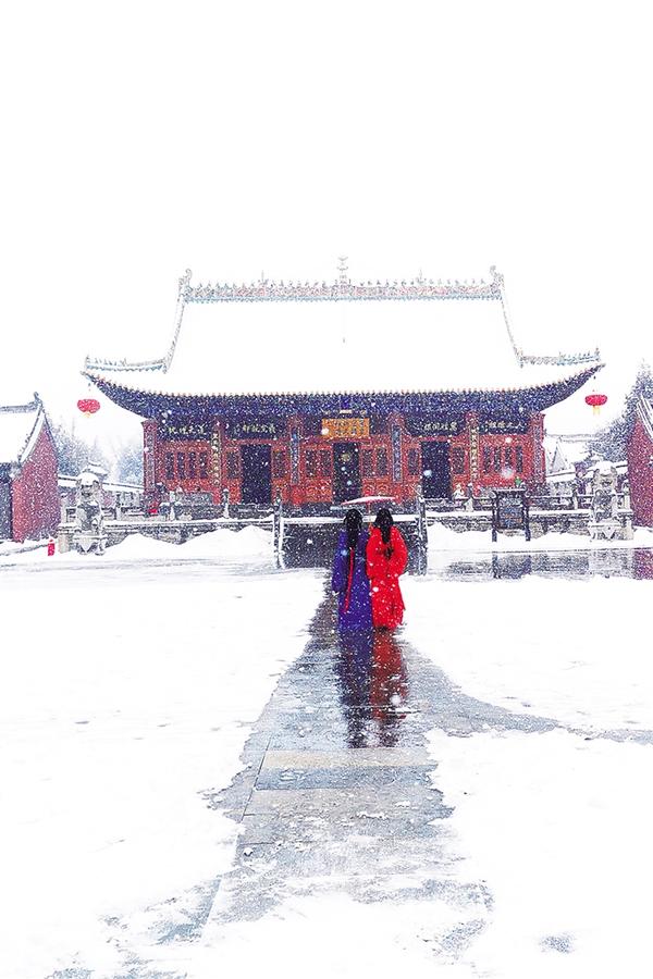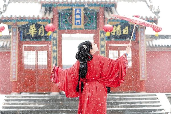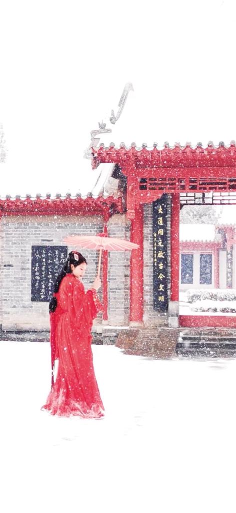 当雪与古建同框,吸引不少古装爱好者前来拍照打卡。镜头中的画面如梦如幻、如诗如画,仿佛一步穿越千年。