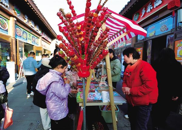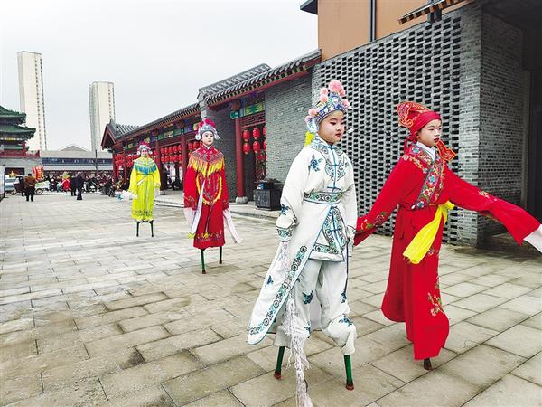 春节期间,周口关帝庙历史街区热闹非凡,年味儿浓郁,首届“三川十馆·春会”吸引了众多市民和游客前来游览。在关帝庙广场、关帝老街,孩子们在家人的陪同下兴奋地穿梭在各个摊位之间,观赏民俗表演,体验非遗文化,品尝名优小吃,好不惬意。一个个精心准备的节目接续上演,萌娃们在轻松愉悦的氛围中感悟中华优秀传统文化的内涵与魅力。王俊祥 戚团结 摄