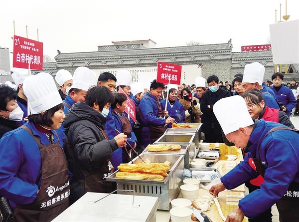 本报讯 随着裁判的一声口令,揉面、擀面、切条、拉扯、下锅……2月19日上午,在商水县邓城镇第九届炸油条大赛上,来自该镇30个行政村的“炸油条高手”轮番登场,各显“炸”技。一根根金黄酥脆的油条,冒着生活的热气鼓了起来。