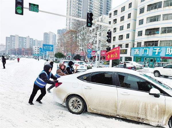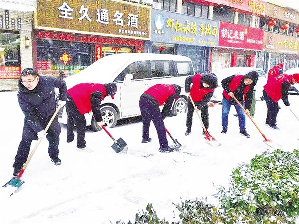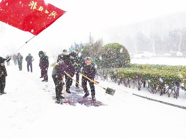 自2月21日我市发出清雪除冰倡议以来,中心城区各区及市直60余家单位4000余名党员干部切实发挥先锋模范和带头表率作用,到分包路段开展清冰雪保畅通志愿服务活动,全力保障市民出行安全,让党旗在“战雪除冰”一线高高飘扬。记者 李瑞才 摄