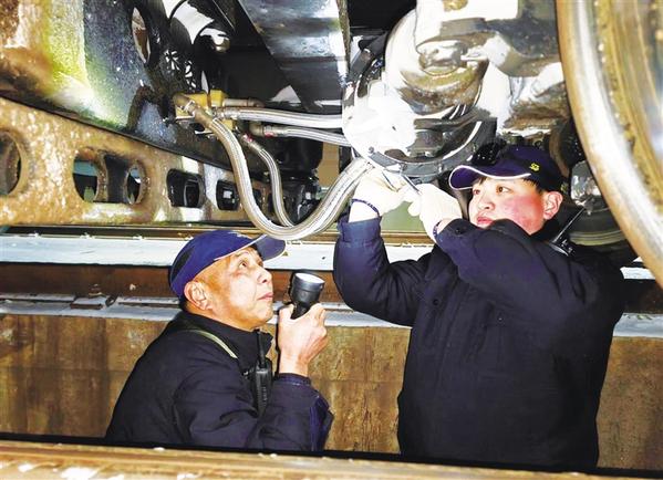 师徒两人要克服室外低温、长时间露天作业等困难,对每列入库客车开展技检、维修。作业时,他们要重复弯腰、下蹲、站起动作上百次,认真检查每一处,确保列车“健康出行”。
