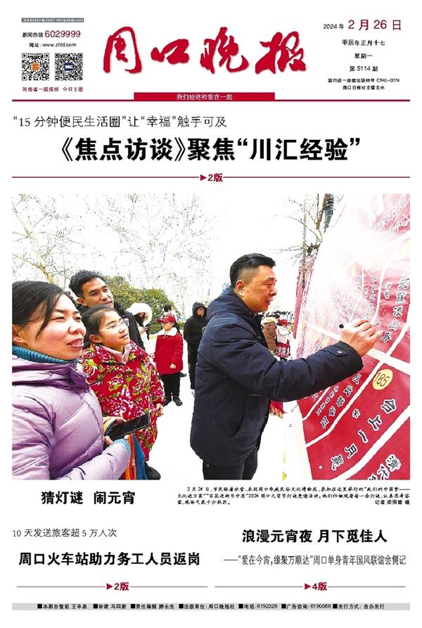 2月24日,市民踩着冰雪,来到周口华威民俗文化博物苑,参加在这里举行的“我们的中国梦——文化进万家”“百花迎新乐中原”2024周口元宵节灯谜竞猜活动。他们仔细观看每一条灯谜,认真思考答案,现场气氛十分热烈。记者 梁照曾 摄