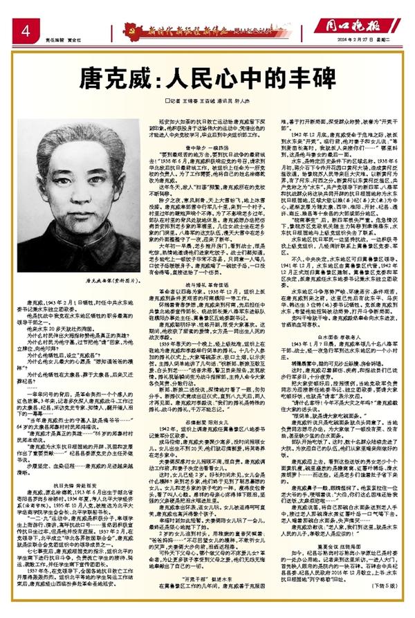 党叫干啥就干啥。唐克威毅然奉命向水东进发,甘洒热血写春秋。
