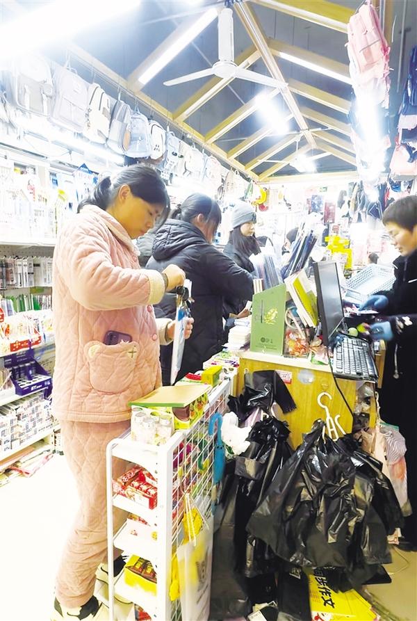 本报讯 新学期伊始,不少学生忙着添置新“装备”。2月27日下午,记者在周口市文昌小学附近的一家文具店内看到,书包、书写本、彩笔、笔芯、橡皮等学习用品整齐地摆放在商店显眼位置,消费者在店内收银台前排起了长队。