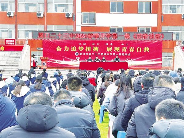 本报讯 春暖开学季,法治第一课如期而至。为深入推进未成年人法治教育,增强未成年人的法治意识和自我保护能力,从源头上预防和减少校园违法犯罪案件发生,3月1日,川汇区人民检察院“青荷雨露”未成年人保护中心法治副校长卢中良走进周口市第二十三初级中学,给同学们上了一堂精彩的法治课。
