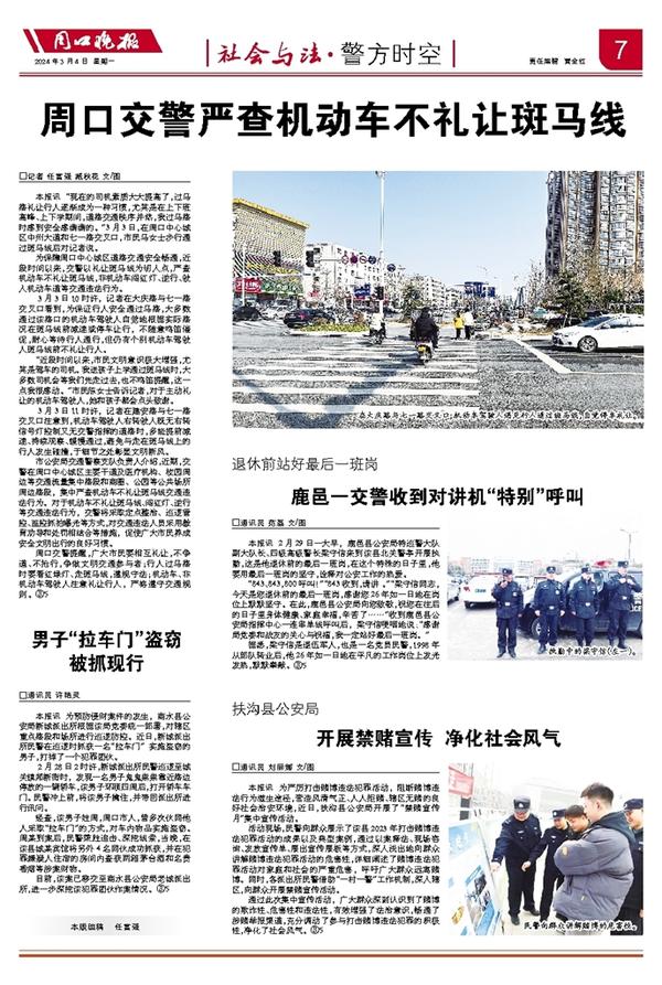 为保障周口中心城区道路交通安全畅通,近段时间以来,交警以礼让斑马线为切入点,严查机动车不礼让斑马线,非机动车闯红灯、逆行、驶入机动车道等交通违法行为。