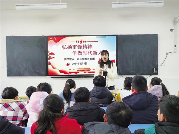 3月4日,周口市六一路小学利用升旗仪式、班会时间,组织学生观看影片、学习《雷锋日记》,加深学生对雷锋精神的认识和理解。