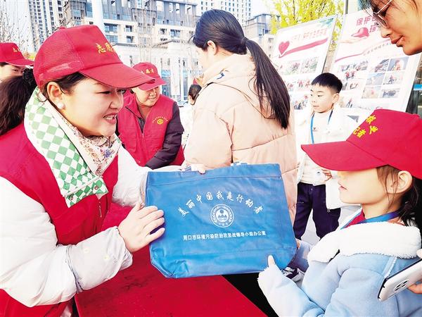 本报讯 3月2日下午,由周口报业小记者中心、周口市大铁牛巾帼志愿者联合会共同举办的“大手拉小手,守护母亲河,共创文明城”活动在中心城区沙颍河南岸举行,100名周口报业小记者参加了活动。
