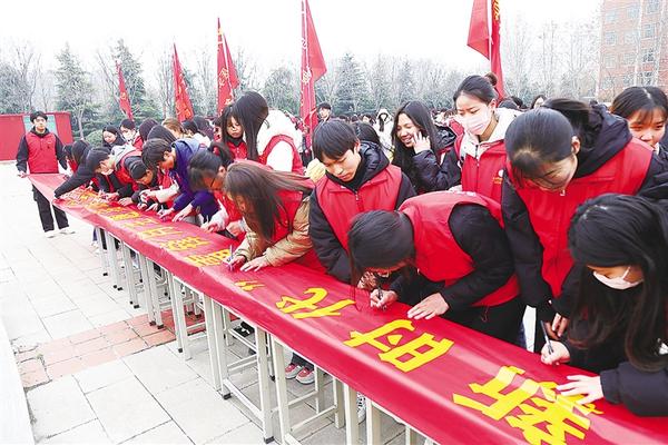 3月4日,河南科技职业大学举行“志愿新征程 建功新时代”雷锋月主题活动启动仪式,学生代表在签名布上签下姓名,承诺以实际行动传承雷锋精神。连日来,我市各级各类学校积极开展形式多样、内容丰富的系列主题实践活动,引导广大学生了解雷锋事迹,感悟雷锋精神时代内涵。记者 刘华志 摄
