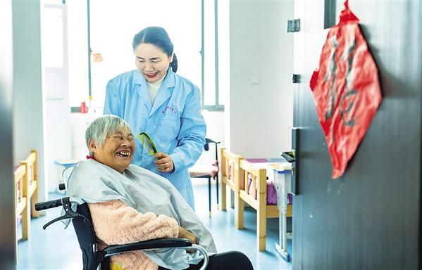 3月7日,扶沟县丰园颐养中心工作人员在为老人梳头。连日来,扶沟县妇联联合多家爱心机构开展“庆‘三八’·关爱她健康”公益活动,为当地妇女、老人免费义诊,营造全社会尊重女性、关爱女性的良好氛围。记者 金月全 通讯员 宋福星 摄